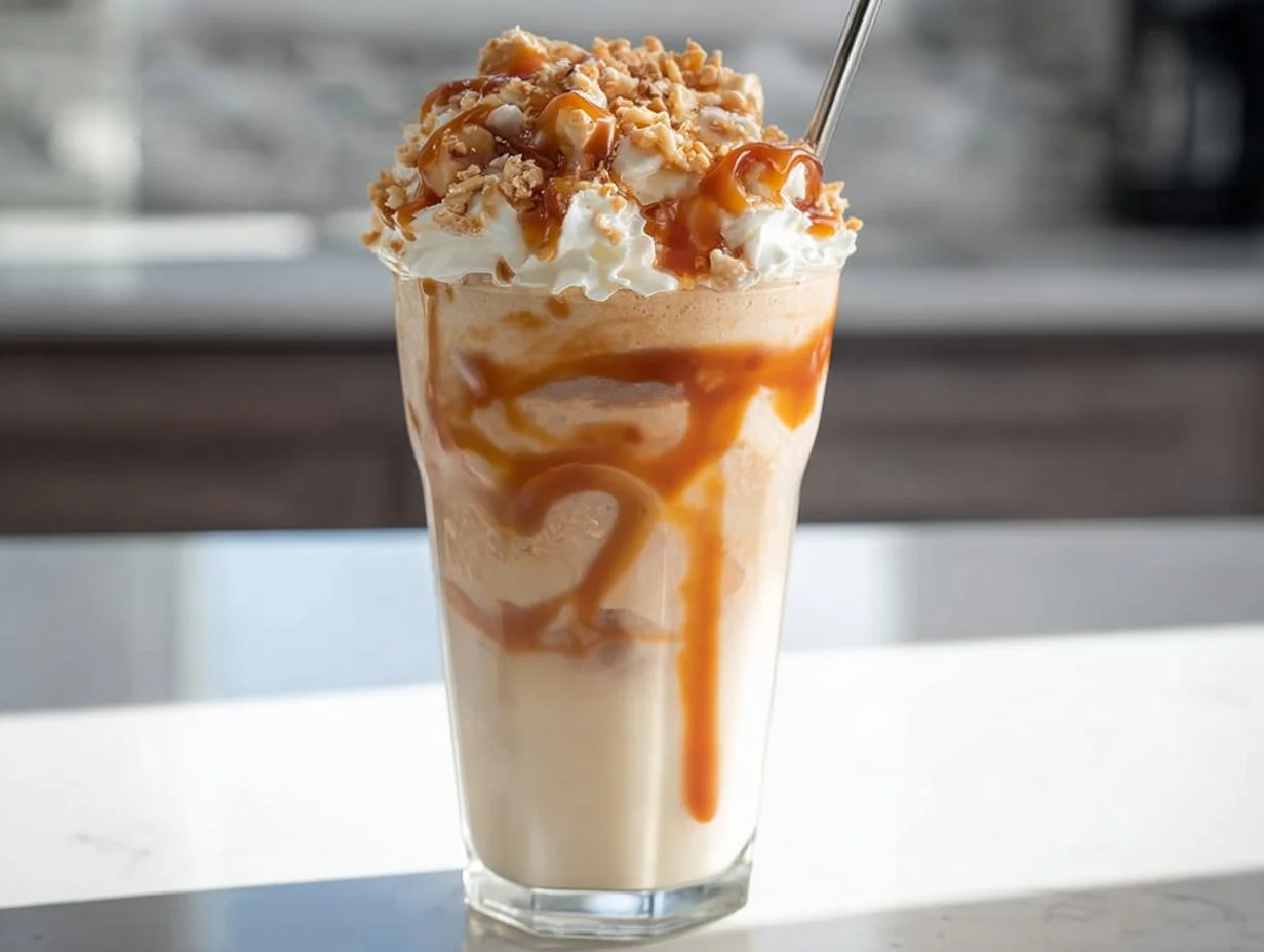 The added crushed caramel candy brings a satisfying crunch that contrasts beautifully with the creamy beverage. It’s a fun twist that makes each sip exciting.